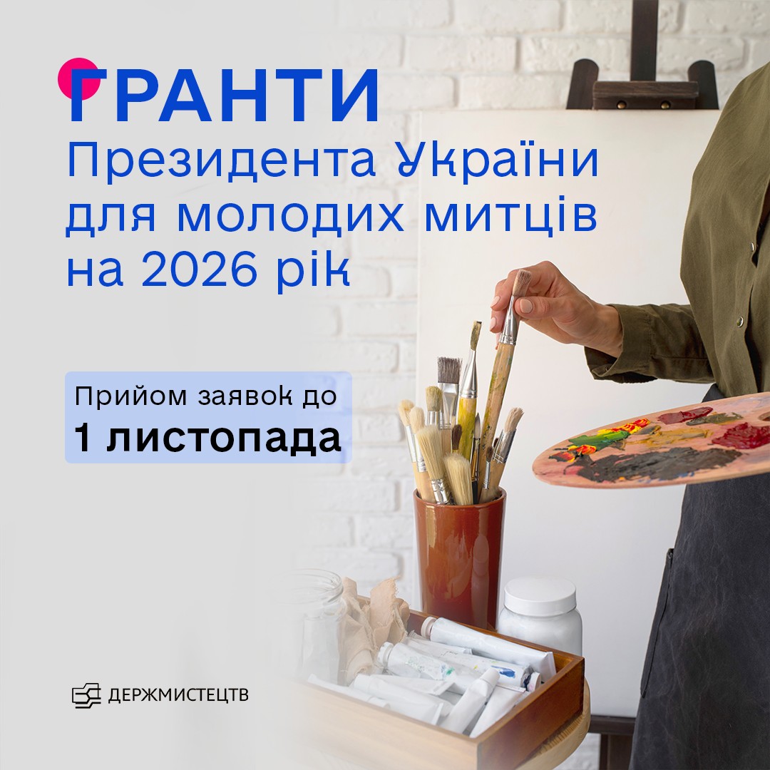 Оголошується конкурс на одержання у 2026 році щорічних грантів Президента України молодим діячам у галузі театрального, музичного, циркового, образотворчого мистецтва, молодим письменникам і майстрам народного мистецтва для створення і реалізації творчих проєктів.