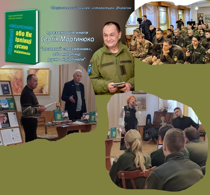 23 жовтня в Національному музеї літератури України відбулася презентація книги першого заступника Голови Спілки офіцерів України письменника Сергія Мартинюка “Позивний письменник або як Ірпінці русню відірпінилиˮ.
